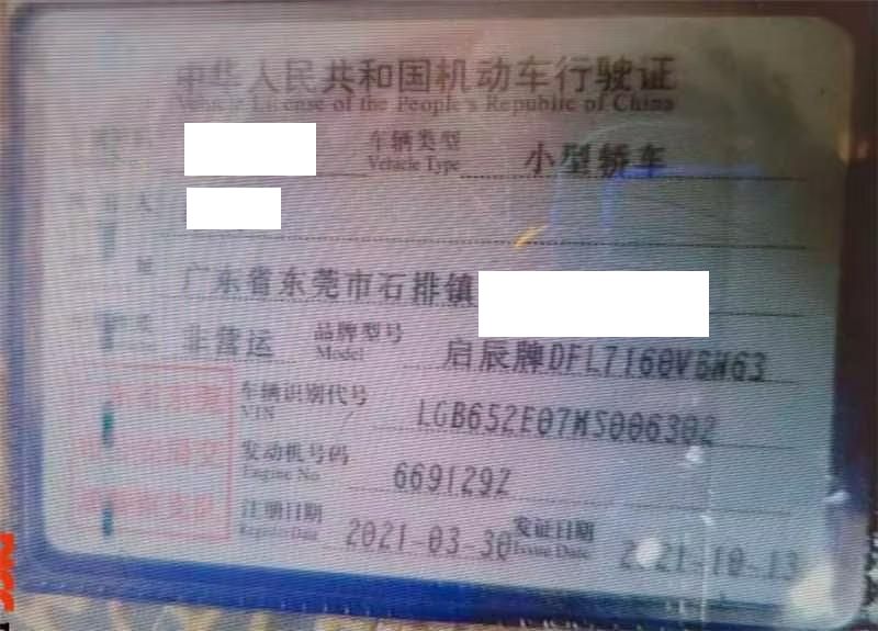 车辆归属地 广东省东莞市 车辆停放仓库 广东省茂名市茂名市