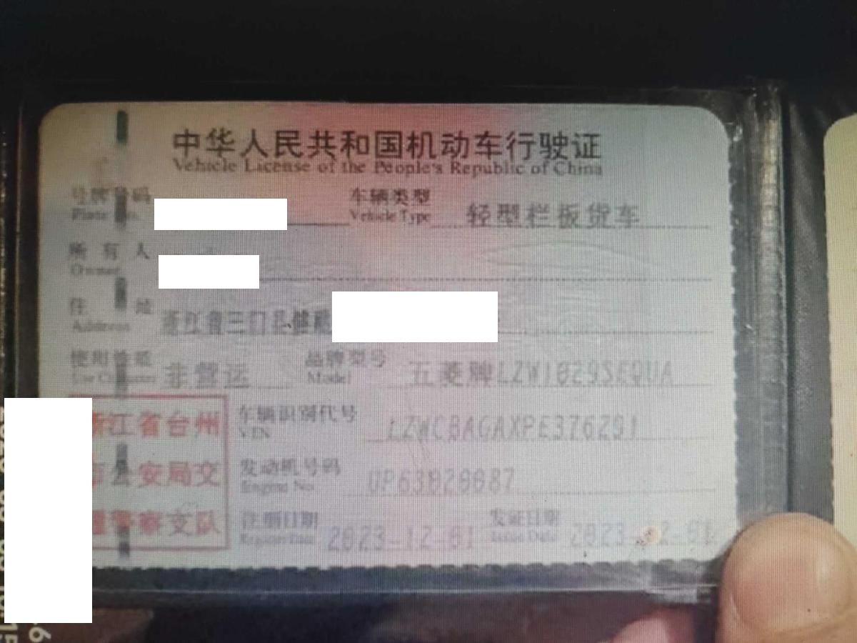 初次登记日期 2023-12-01 车辆名称 五菱汽车 五菱荣光小卡
