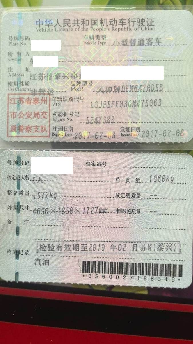 初次登记日期 2017-02-08 车辆名称 东风风神AX7