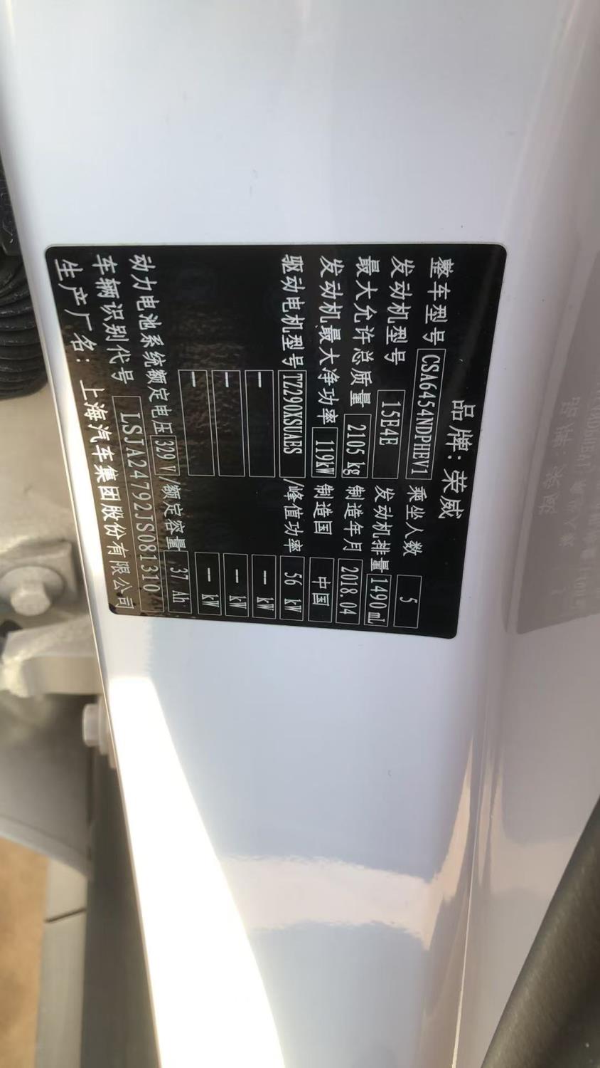 初次登记日期 2018-07-27 车辆名称 荣威RX5新能源
