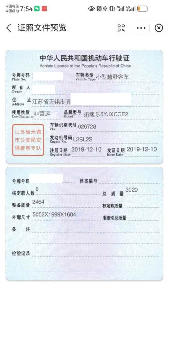 车辆归属地 江苏省无锡 车辆停放仓库 江苏省泰州市泰州市