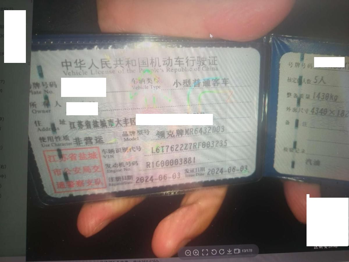 初次登记日期 2024-06-03 车辆名称 领克06