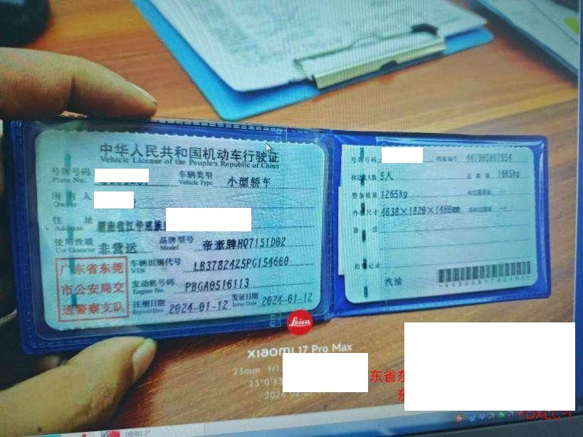 初次登记日期 2024-01-12 车辆名称 吉利汽车 帝豪