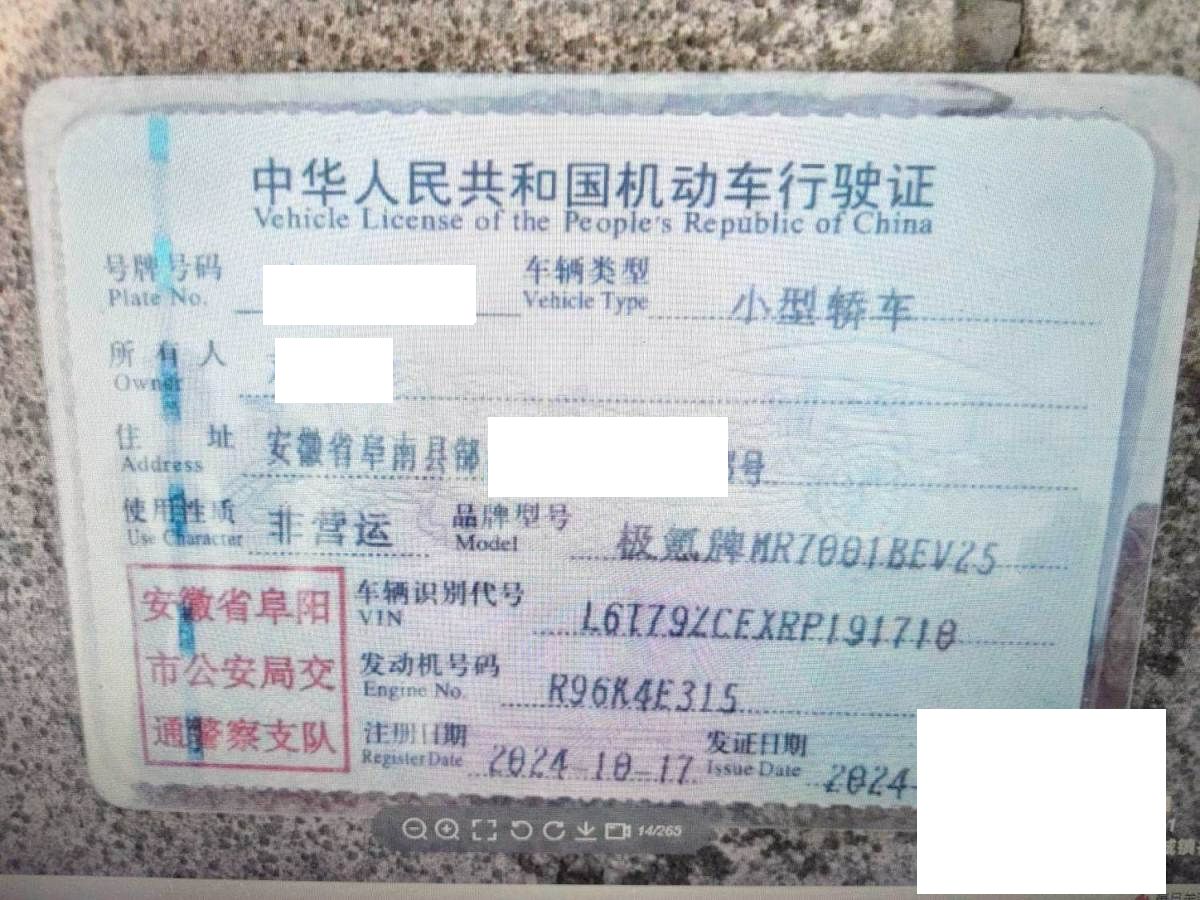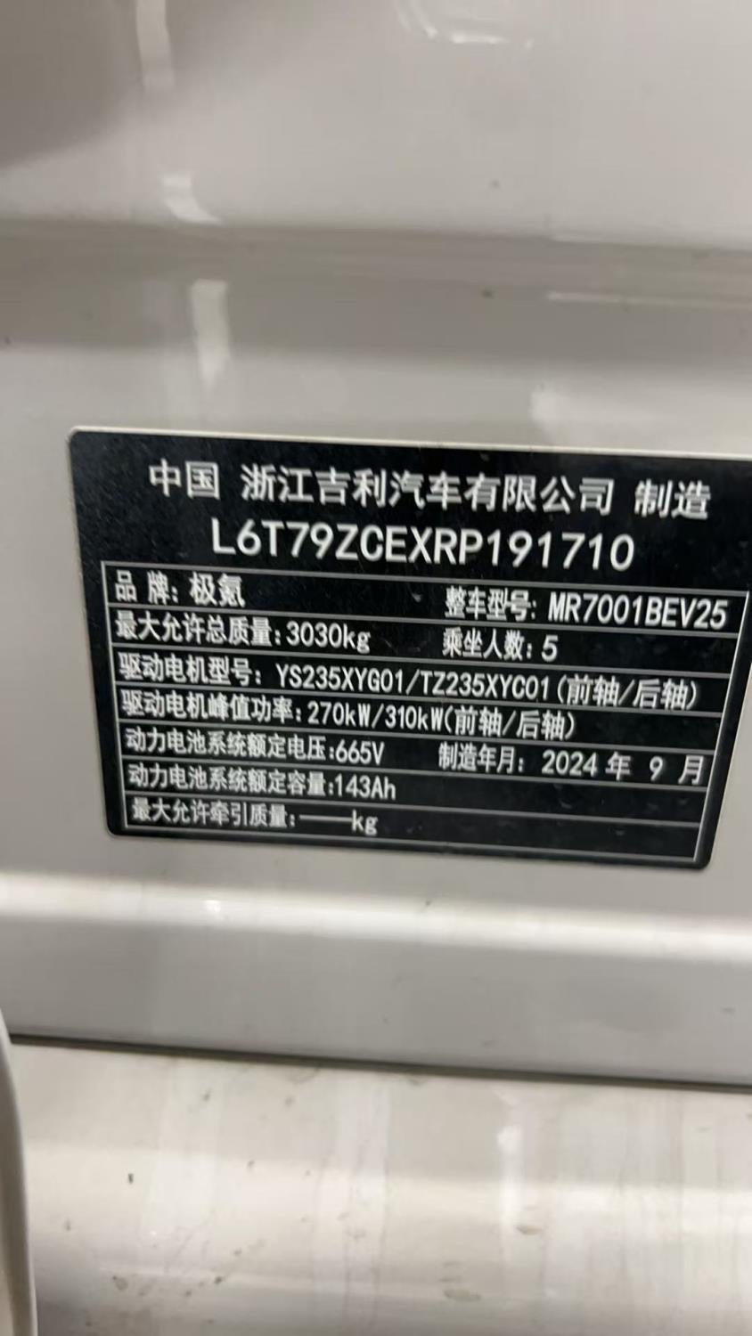 初次登记日期 2024-10-17 车辆名称 极氪牌