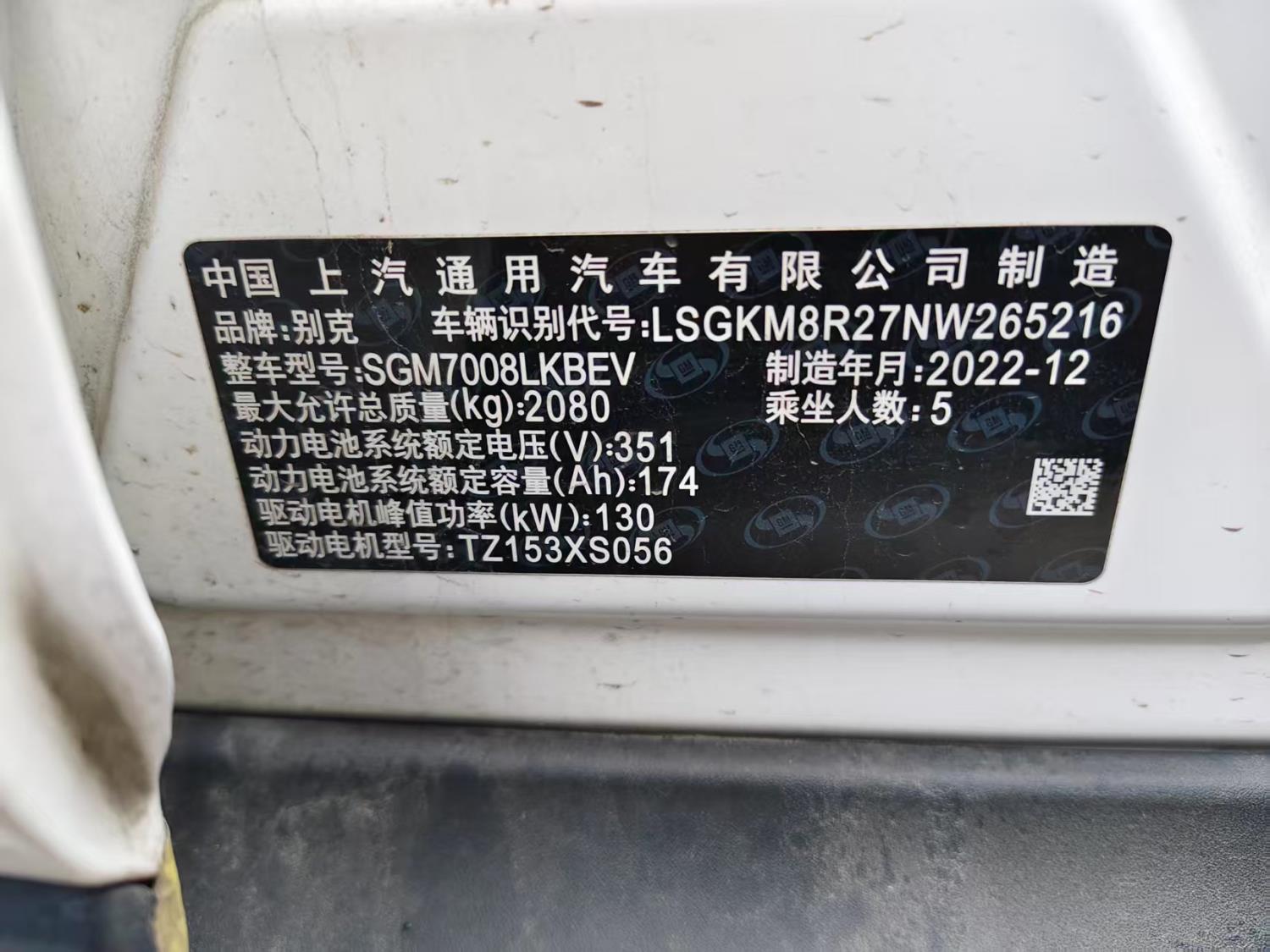 底盘号码 LSGKM8R27NW265216 变速箱类型 自动