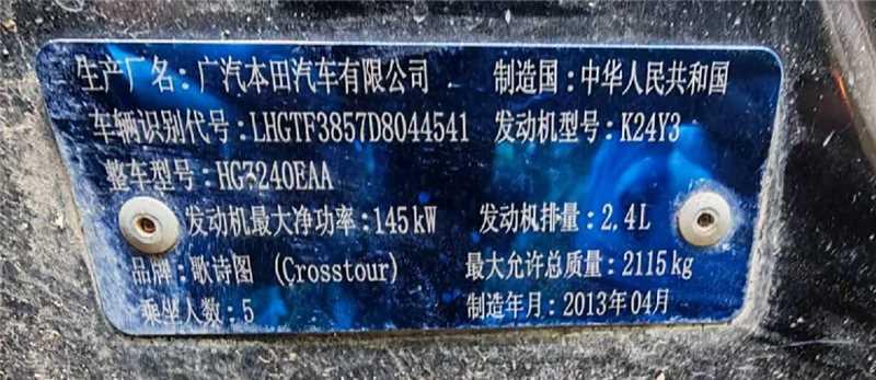 初次登记日期 2013-08-16 车辆名称 本田 歌诗图