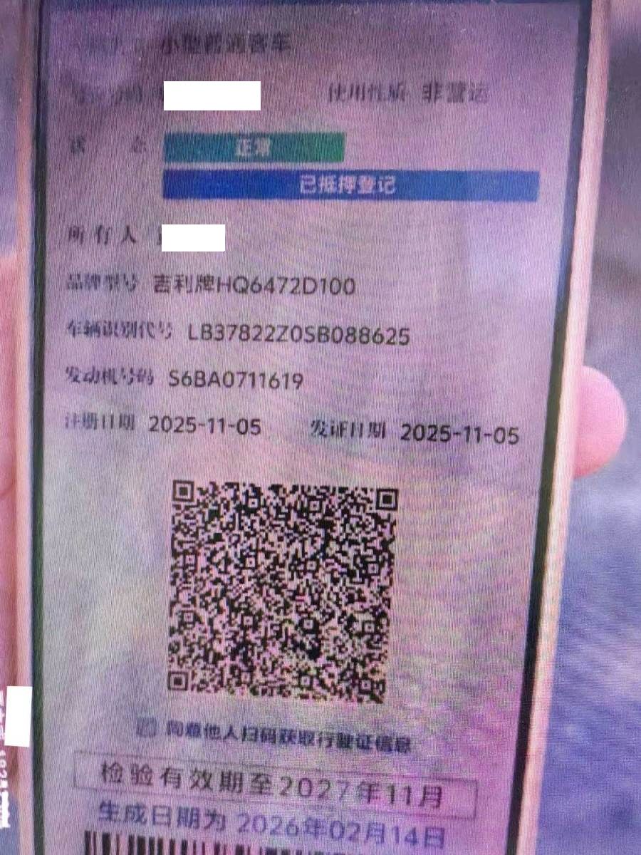 初次登记日期 2025-11-05 车辆名称 吉利汽车 博越L