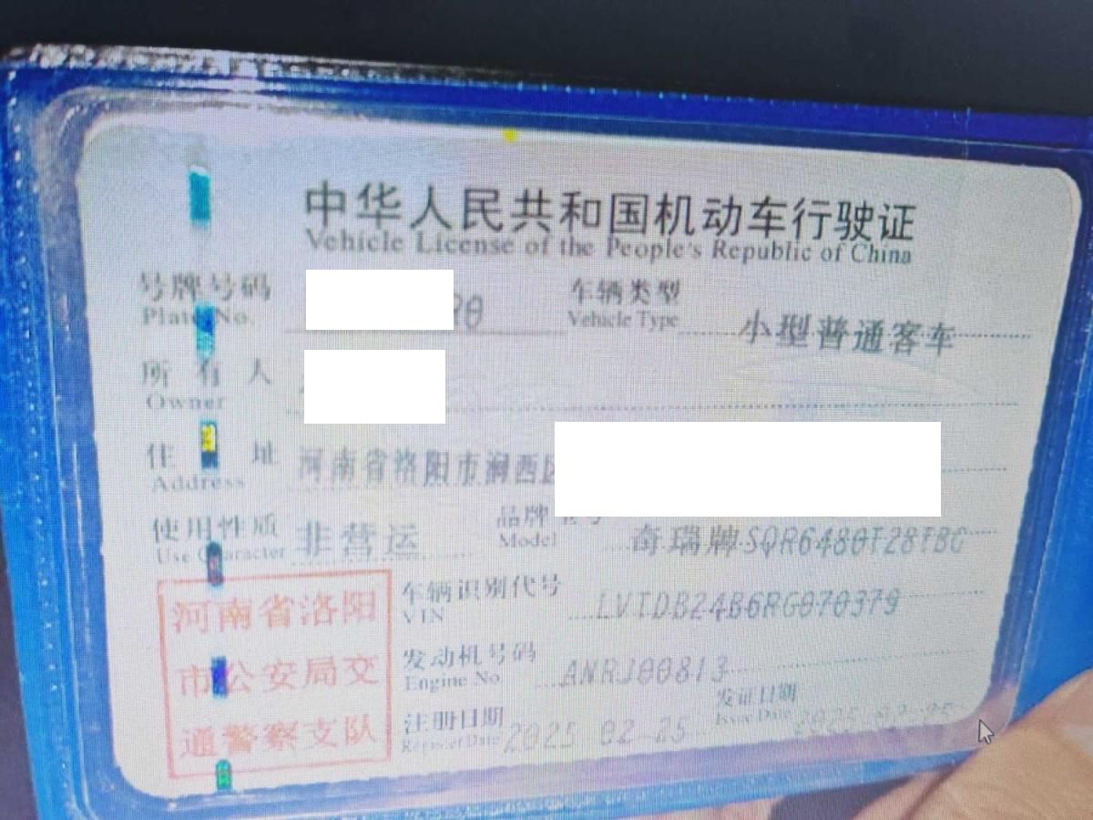 初次登记日期 2025-02-25 车辆名称 奇瑞 瑞虎8L