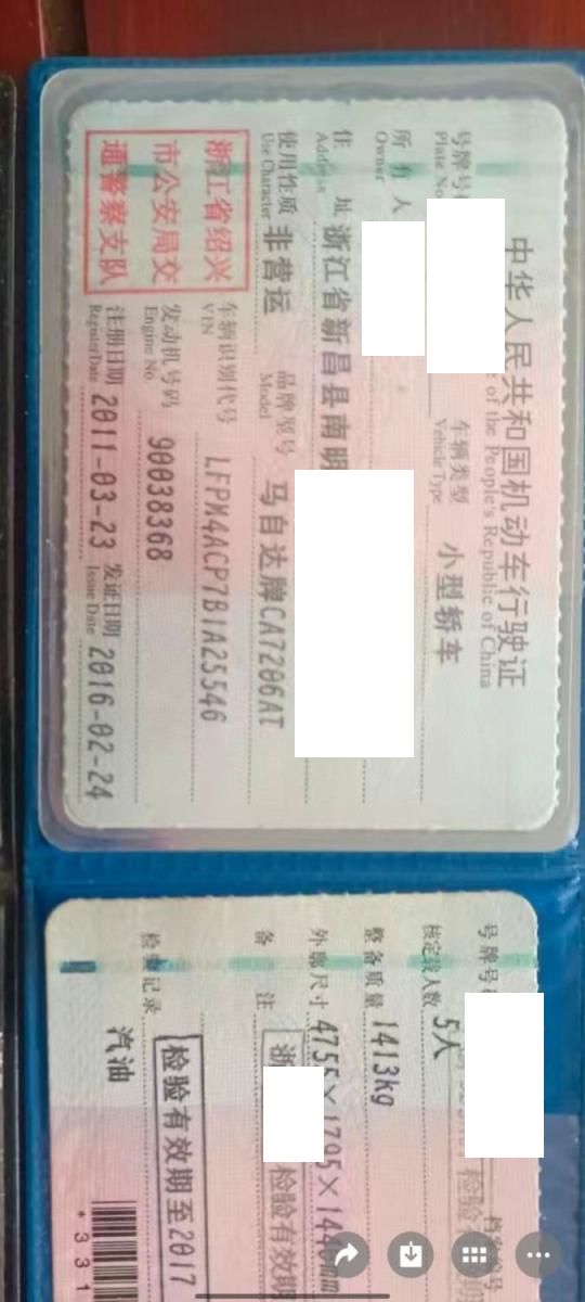 车牌号 浙****** 品牌 马自达