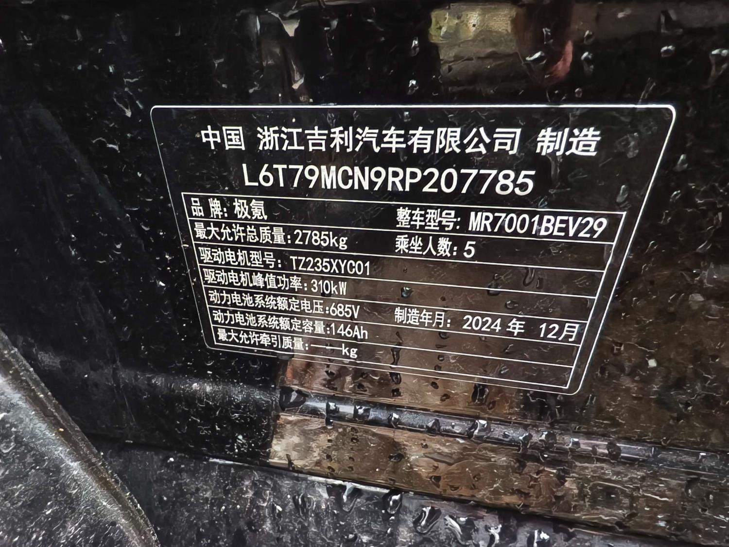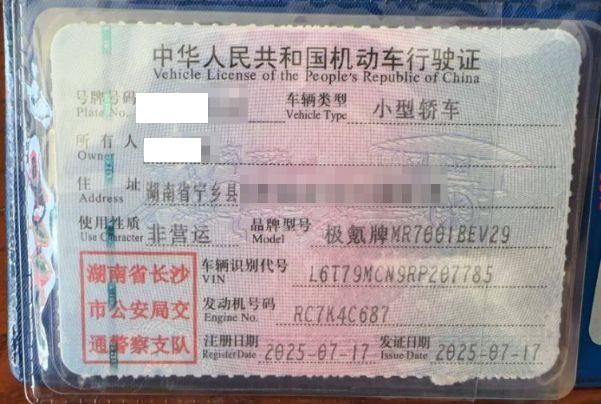 初次登记日期 2025-07-17 车辆名称 极氪牌