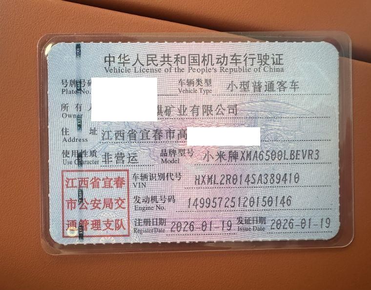 初次登记日期 2025-01-19 车辆名称 小米汽车 小米