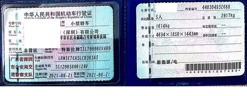 初次登记日期 2021-06-21 车辆名称 特斯拉 Model