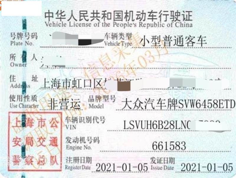 车牌号 沪****** 品牌 大众