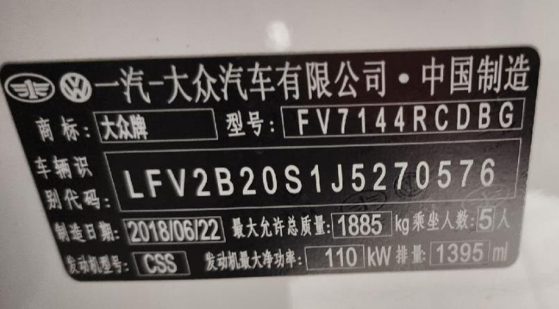 底盘号码 LFV2B20S1J5270576 变速箱类型 自动