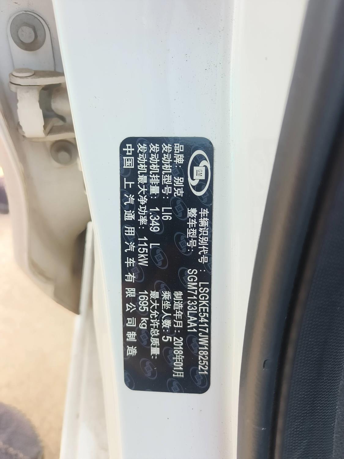 初次登记日期 2018-03-23 车辆名称 别克 英朗