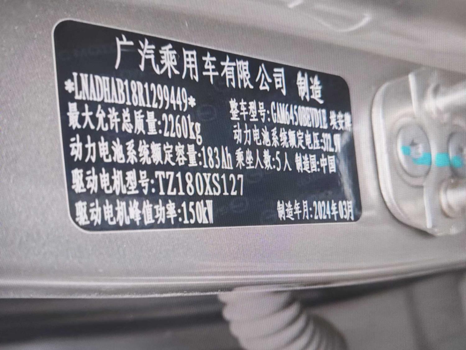 初次登记日期 2024-06-18 车辆名称 埃安 AION