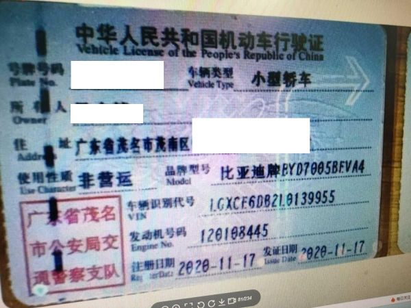 初次登记日期 2020-11-17 车辆名称 比亚迪 秦新能源