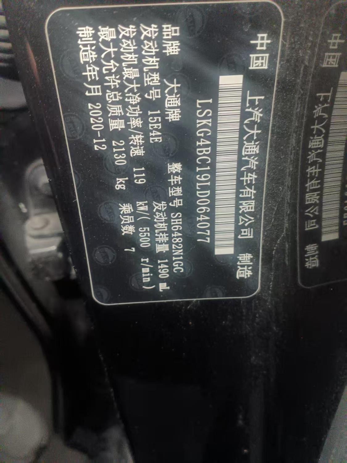 底盘号码 LSKG4BC19LD064077 变速箱类型 自动