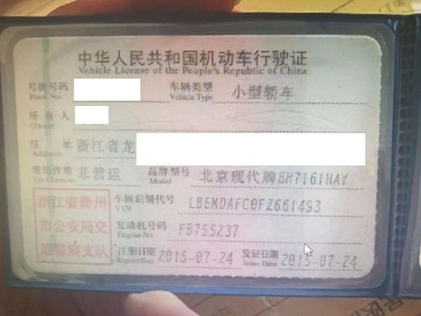 车牌号 浙****** 品牌 现代