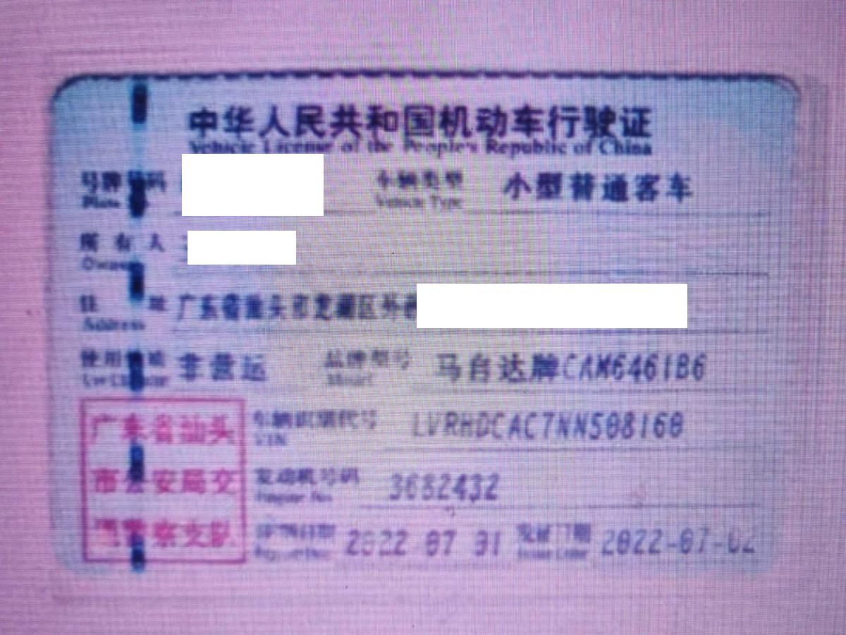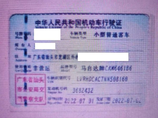 车牌号 粤****** 品牌 马自达