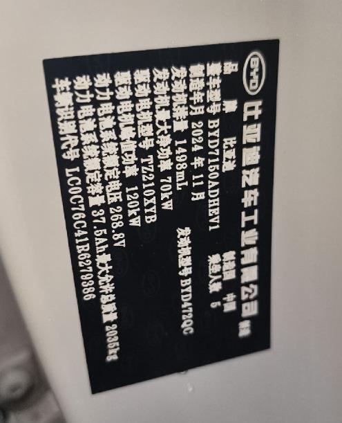 初次登记日期 2024-12-20 车辆名称 比亚迪 海豹