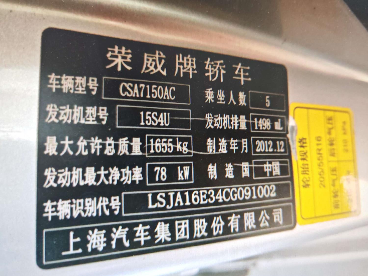 初次登记日期 2013-06-09 车辆名称 荣威350