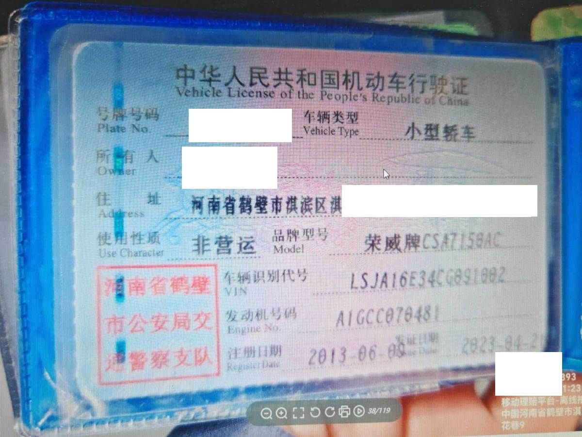 车牌号 豫****** 品牌 荣威