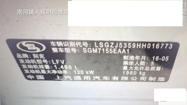 车牌号 皖****** 品牌 别克