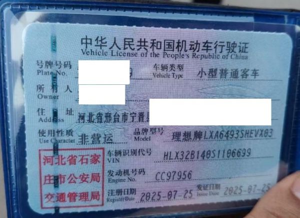 车牌号 冀****** 品牌 理想