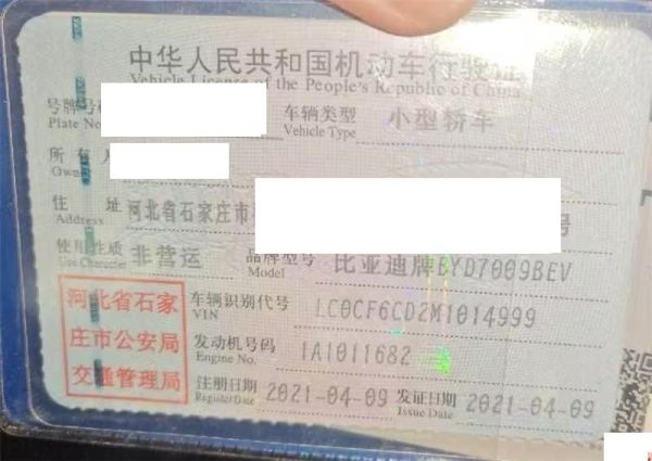 车牌号 冀****** 品牌 比亚迪