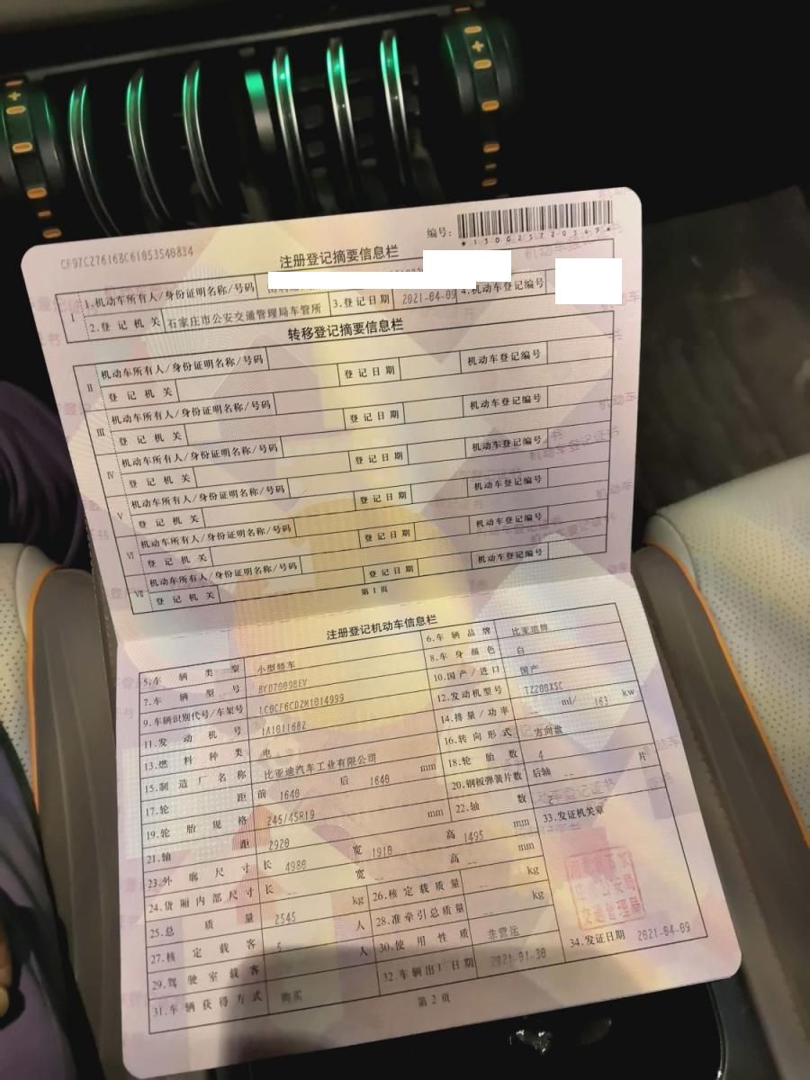 初次登记日期 2021-04-09 车辆名称 比亚迪 汉
