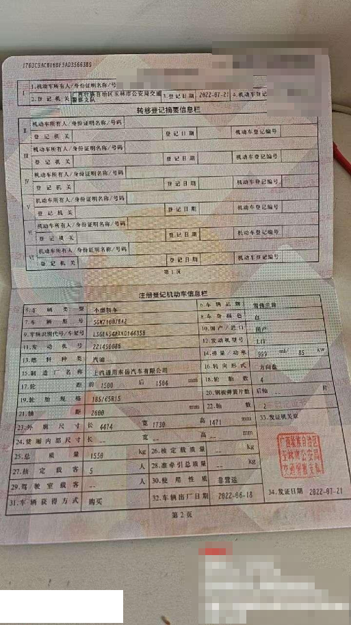 初次登记日期 2022-07-21 车辆名称 雪佛兰 科沃兹