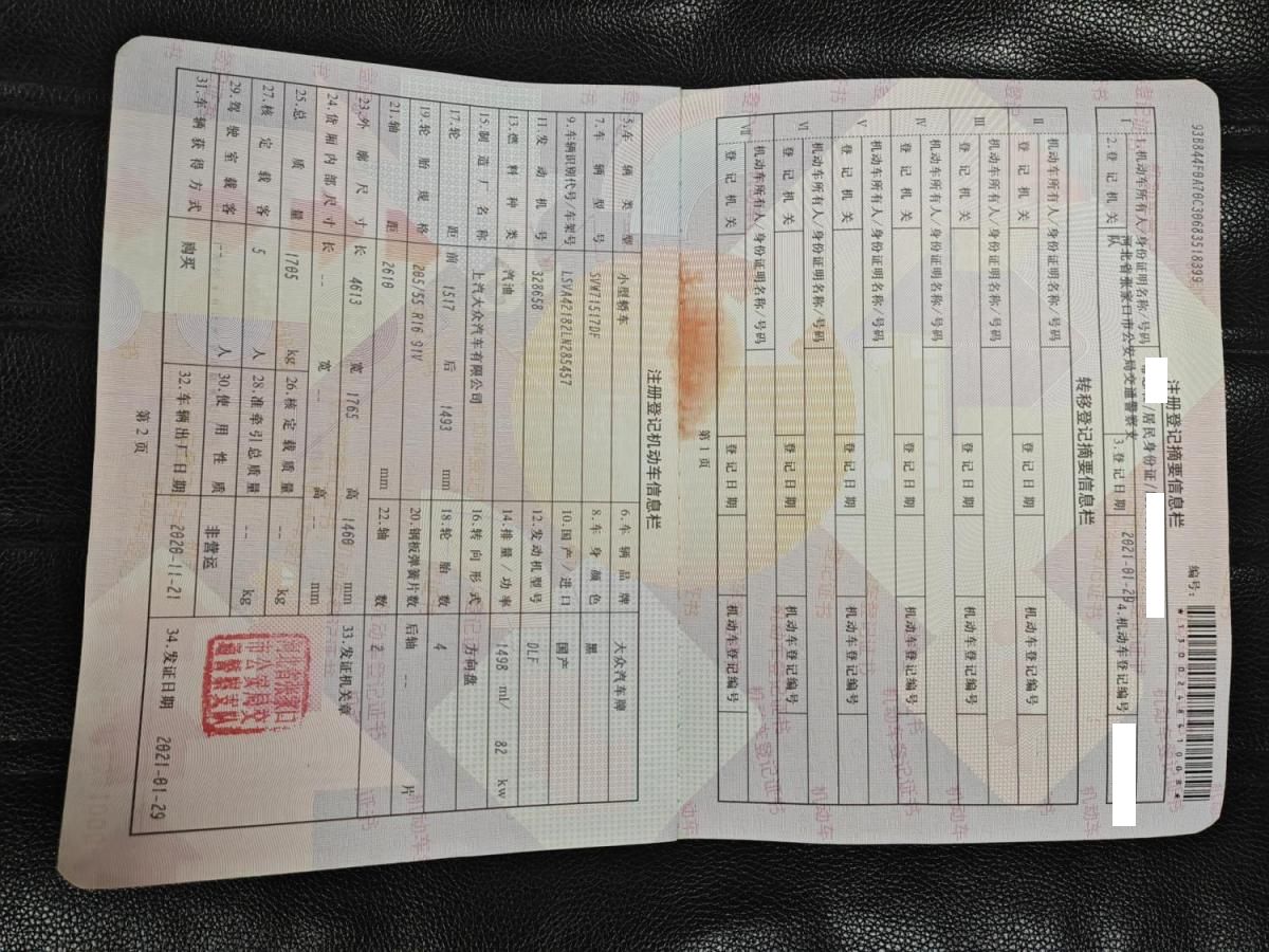 初次登记日期 2021-01-29 车辆名称 大众 朗逸