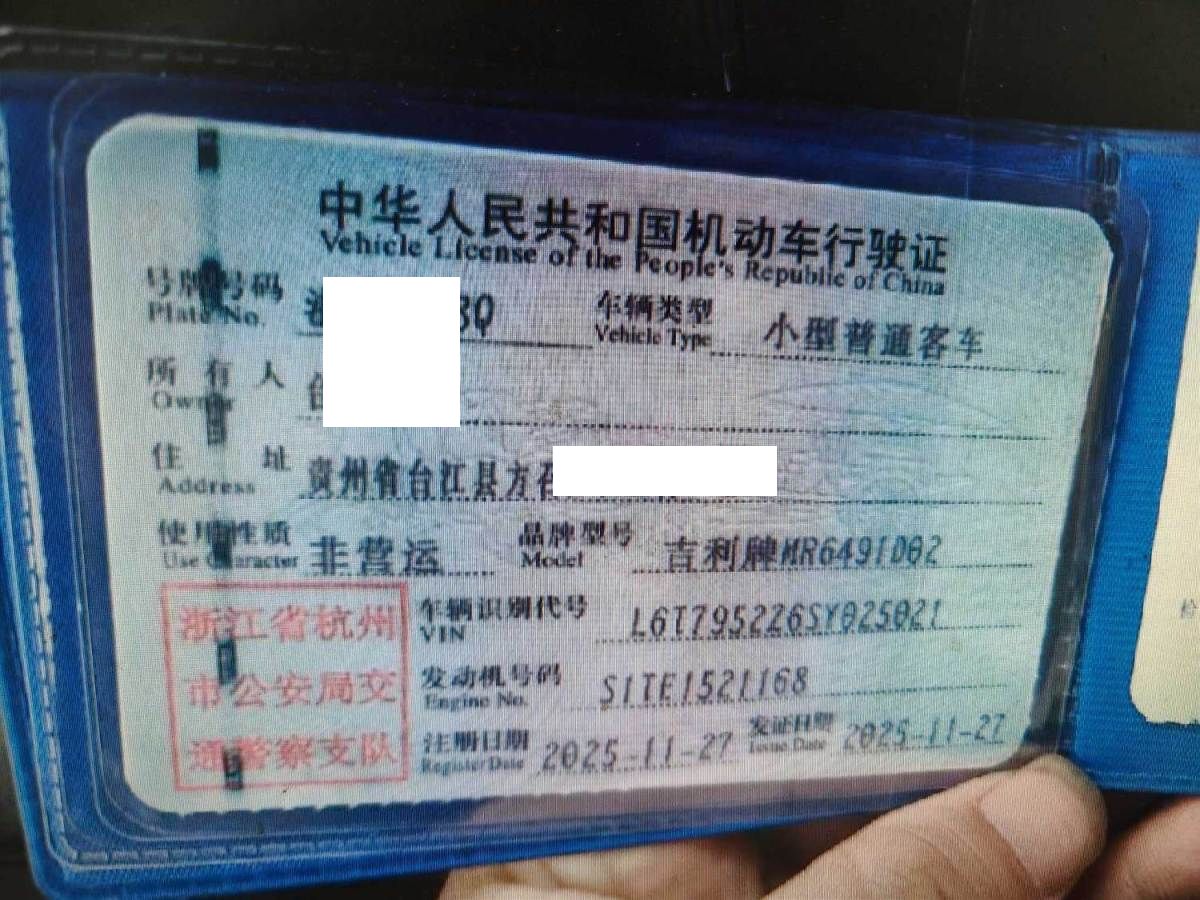 车牌号 浙****** 品牌 吉利