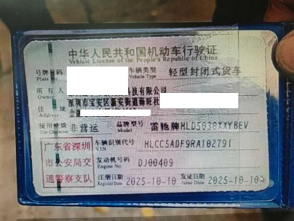 初次登记日期 2025-10-10 车辆名称 雷驰牌