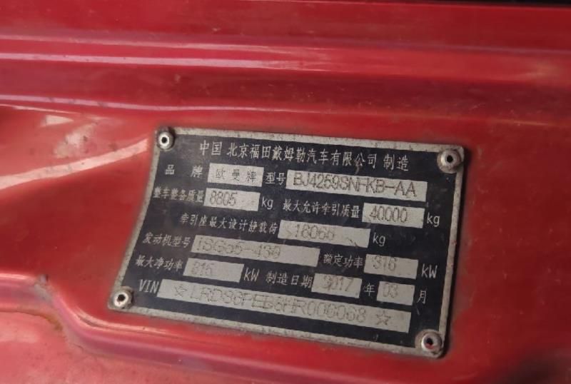 初次登记日期 2017-03-31 车辆名称 福田 欧曼神舟