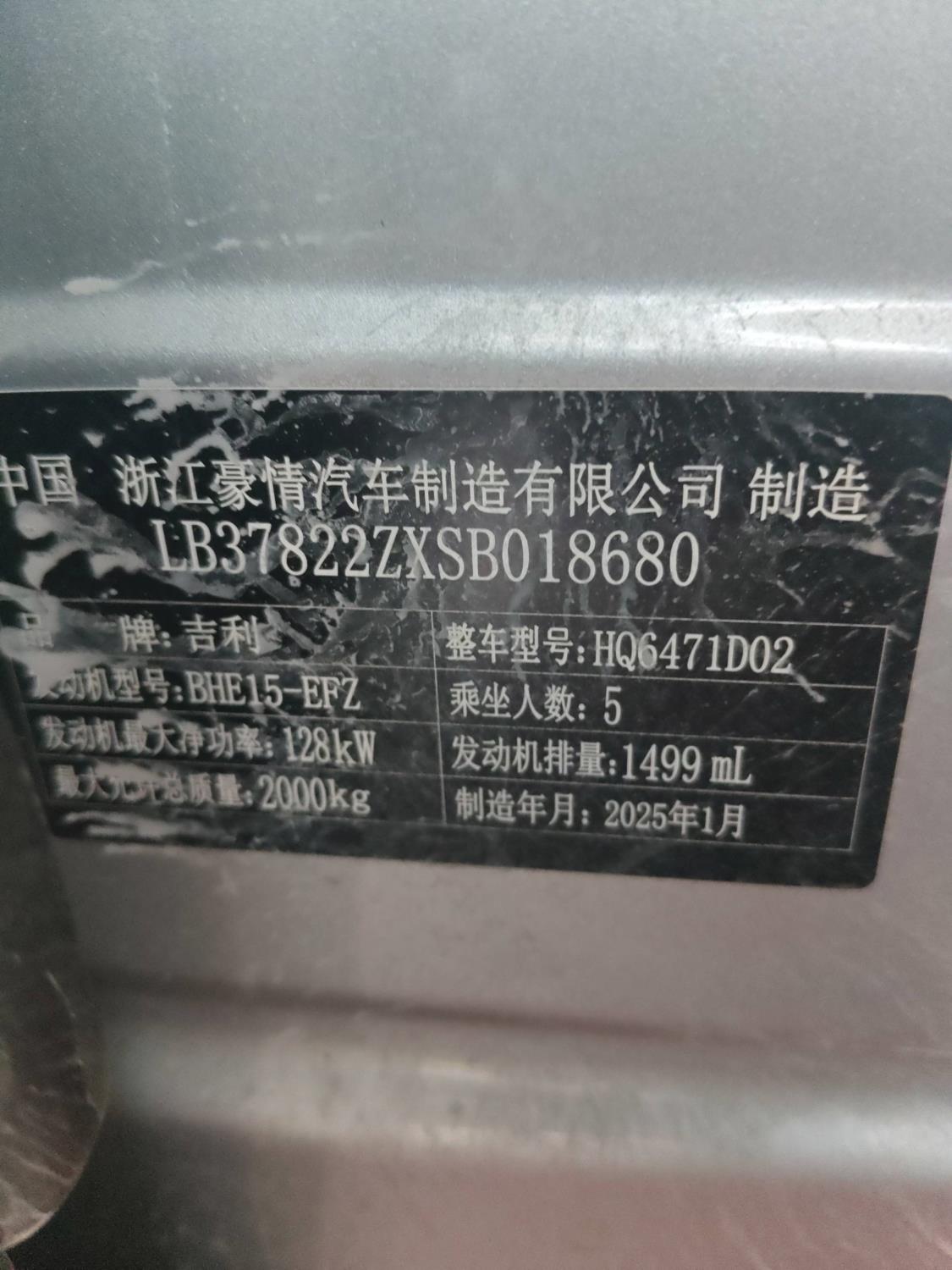 初次登记日期 2025-02-07 车辆名称 吉利汽车 博越L