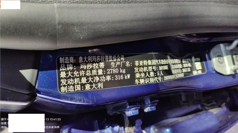 车牌号 粤****** 品牌 玛莎拉蒂