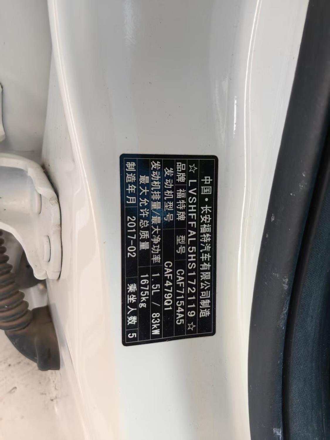 初次登记日期 2017-05-08 车辆名称 福特 福睿斯