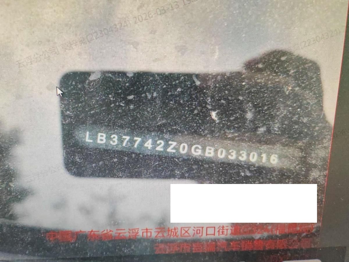底盘号码 LB37742Z0GB033016 变速箱类型 手自一体