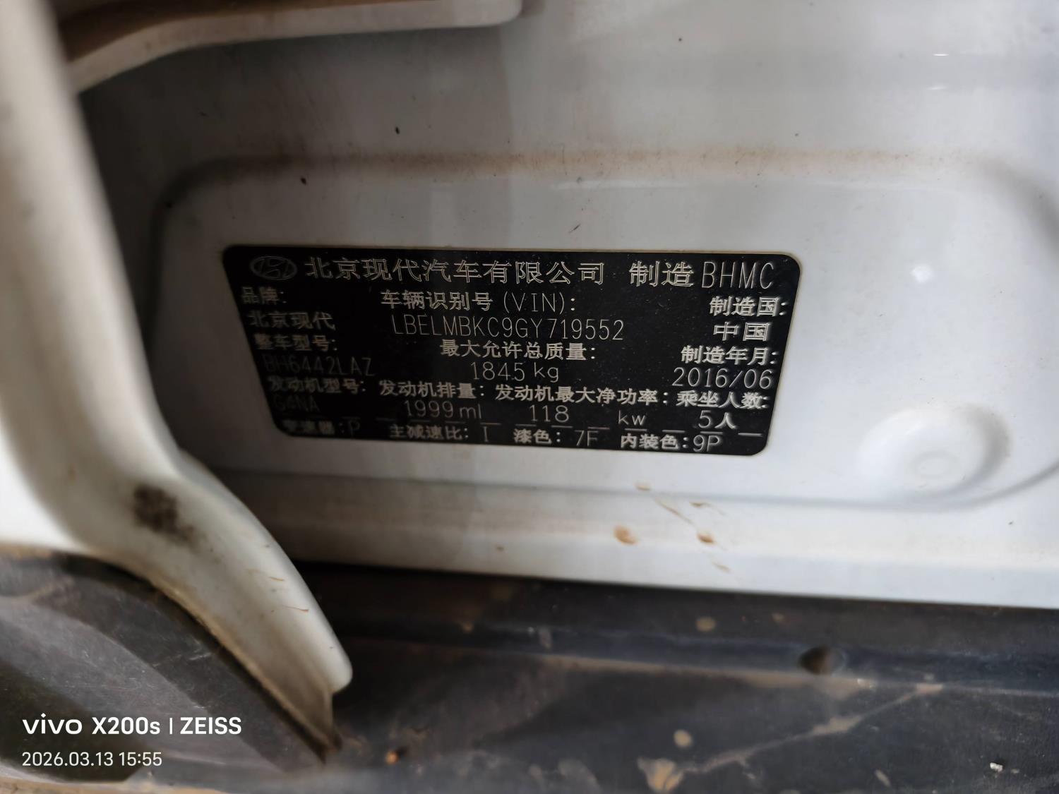 底盘号码 LBELMBKC9GY719552 变速箱类型 手自一体