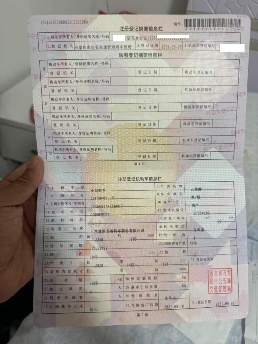 车牌号 冀****** 品牌 五菱