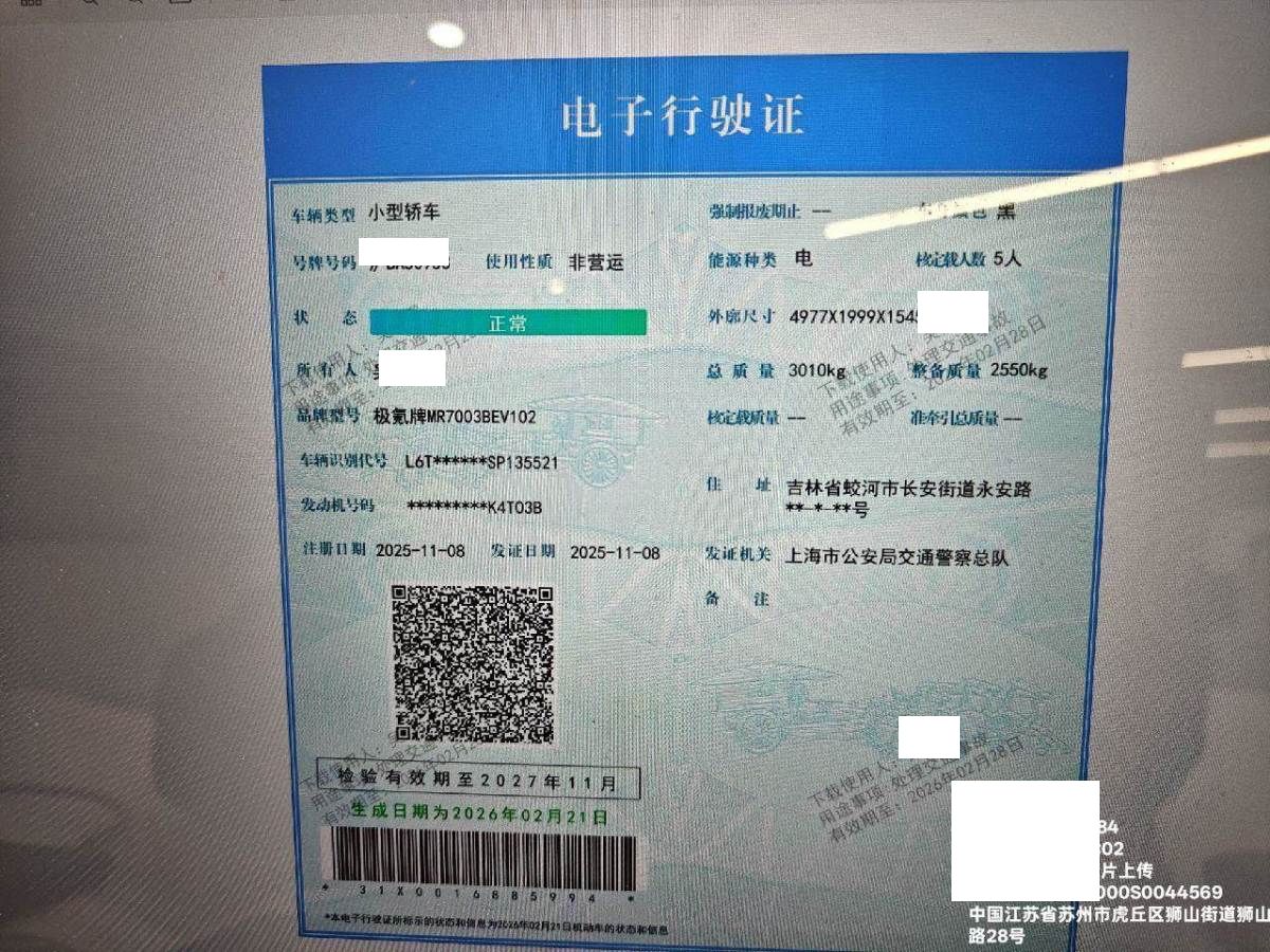 初次登记日期 2025-11-08 车辆名称 极氪001