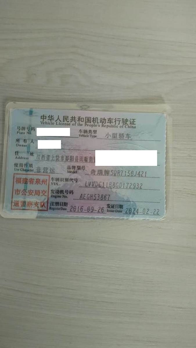 车牌号 闽****** 品牌 奇瑞