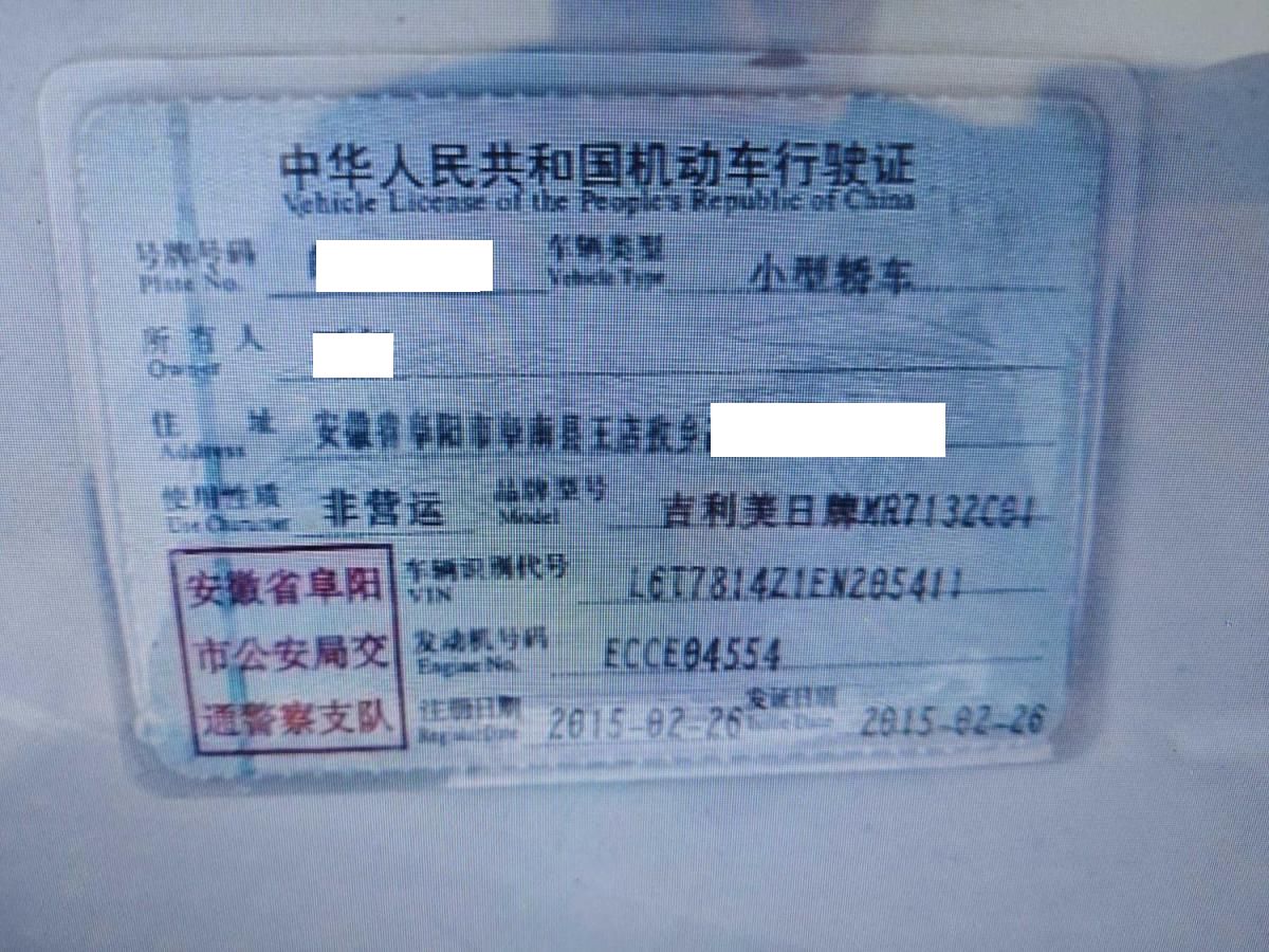 初次登记日期 2015-02-26 车辆名称 吉利汽车 帝豪