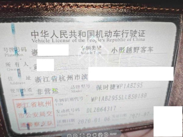 车牌号 浙****** 品牌 保时捷