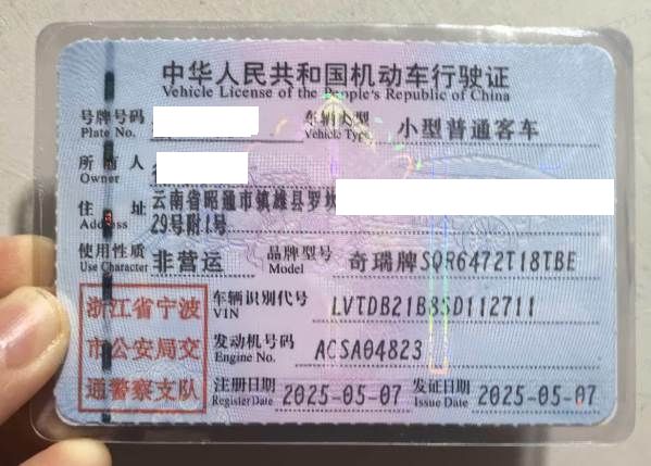 初次登记日期 2025-05-07 车辆名称 奇瑞 瑞虎8 PLUS