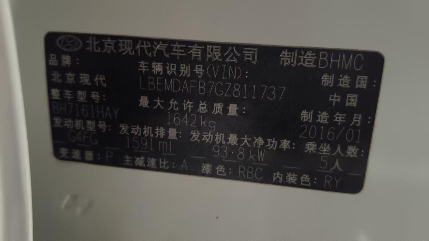 初次登记日期 2016-02-05 车辆名称 现代 朗动