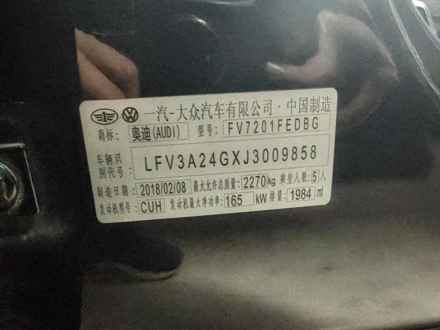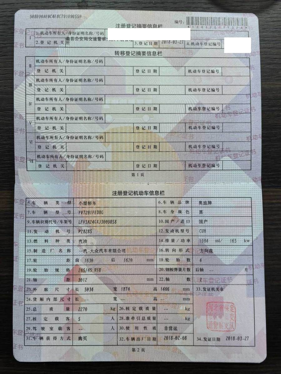 初次登记日期 2018-03-27 车辆名称 奥迪A6L