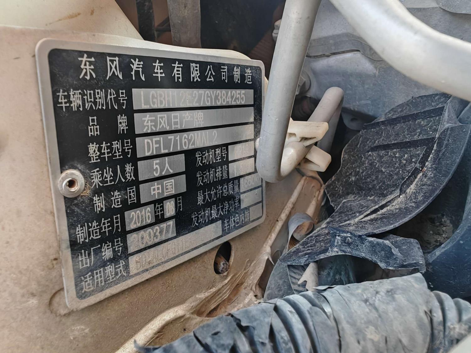 底盘号码 LGBH12E27GY384255 变速箱类型 手动